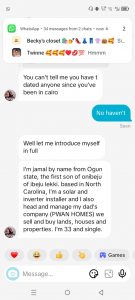 Further investigations by Opeyemi revealed that Jamal is currently chatting with another lady using the same tactics — unaware that the new target is a close friend of Opeyemi. This suggests that Jamal may be a serial fraudster preying on unsuspecting women through online dating platforms.